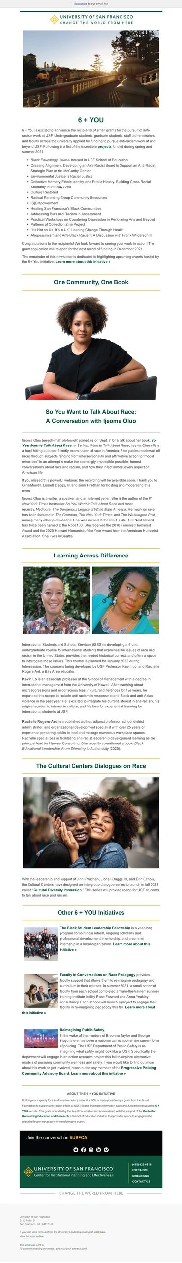 While at the University of San Francisco, I would receive email copy from various departments. I then copyedited the content and used Emma templates to format the newsletters consistently.